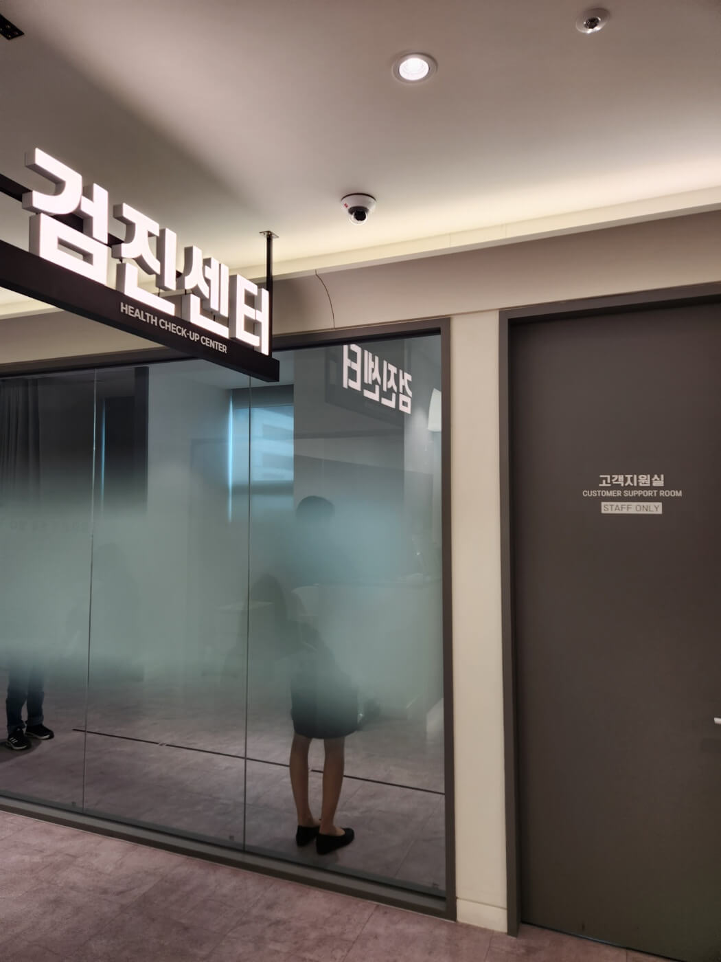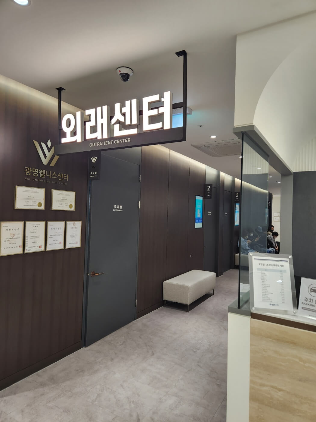 정면으로 들어가면 원무과가 보이고 대기석이 쭉 늘어서 있다. 왼쪽이 외래센터, 오른쪽이 검진센터 정면 뒤쪽이 내시경 검진 센터가 있다. 공간 구획을 참 잘한거 같다.