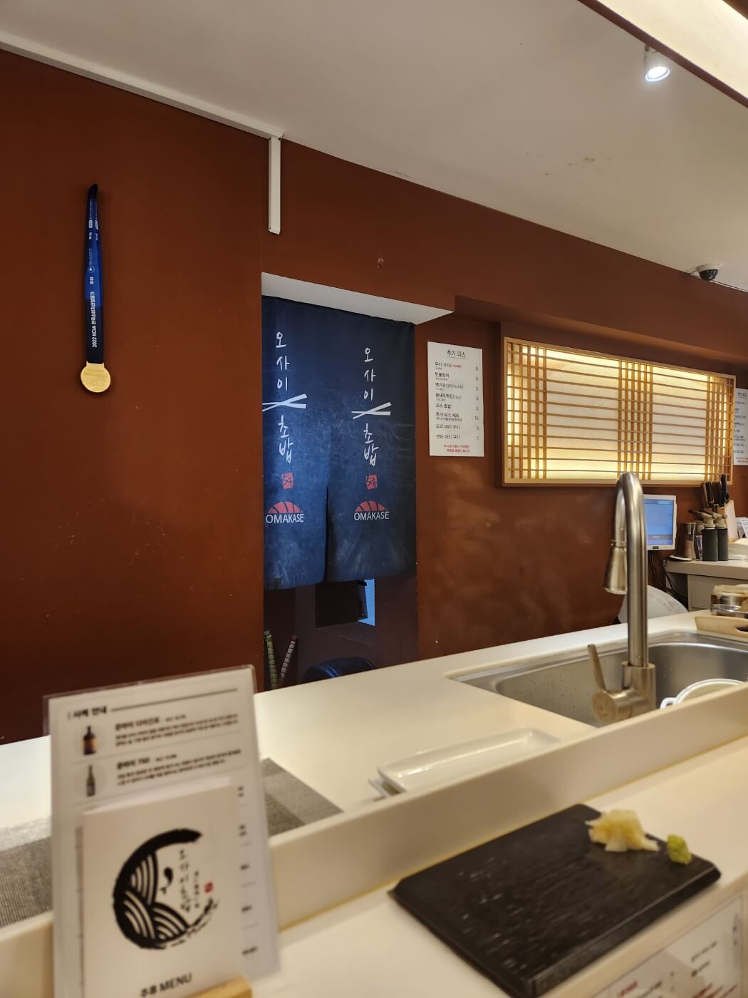 셰프님이 무슨 대회에서 매달을 받은 거 같더라구요. 벽에 메달이 걸려 있어요. 그래서 그런지 똑같은 간장새우를 해도 진짜 실한 새우에 꼬리 다 떼고 정말 속살만 단짠의 조화가 아주 좋았어요. 추가로 주문해야하는 우니는 정말 하나도 안비리고 크리미 하더라구요. 저는 우니를 별로 안좋아하는데도 맛있었어요.