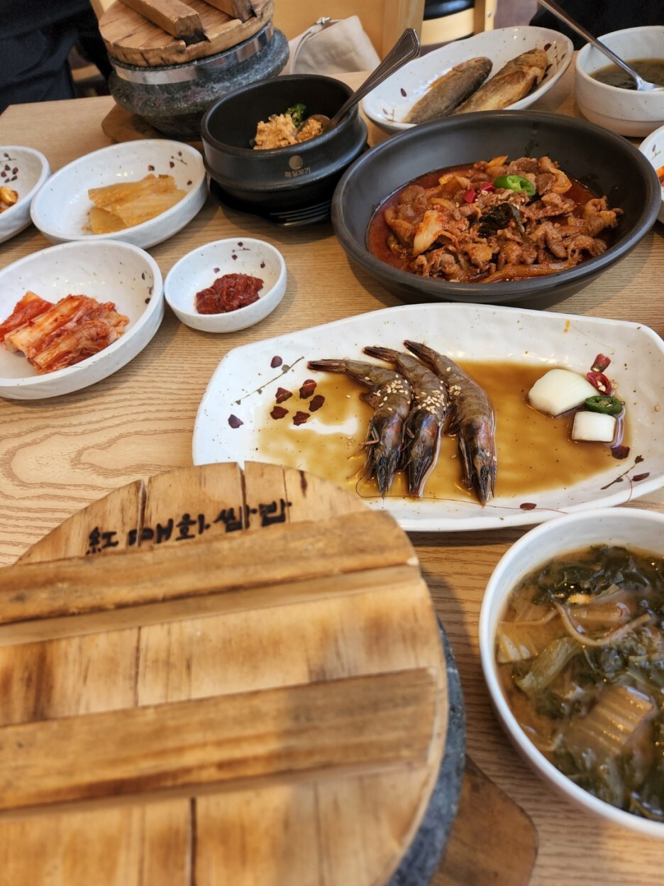 가격은 올라서 1인 16900원인데 갈때마다 계속 오른다. 거의 단 메뉴라 시키면 바로 아래 사진 상태로 세팅해준다. 밑반찬 모두 다 맛있고 생선만 빼고 리필이 가능하며 밥은 돌솥에 나온다.