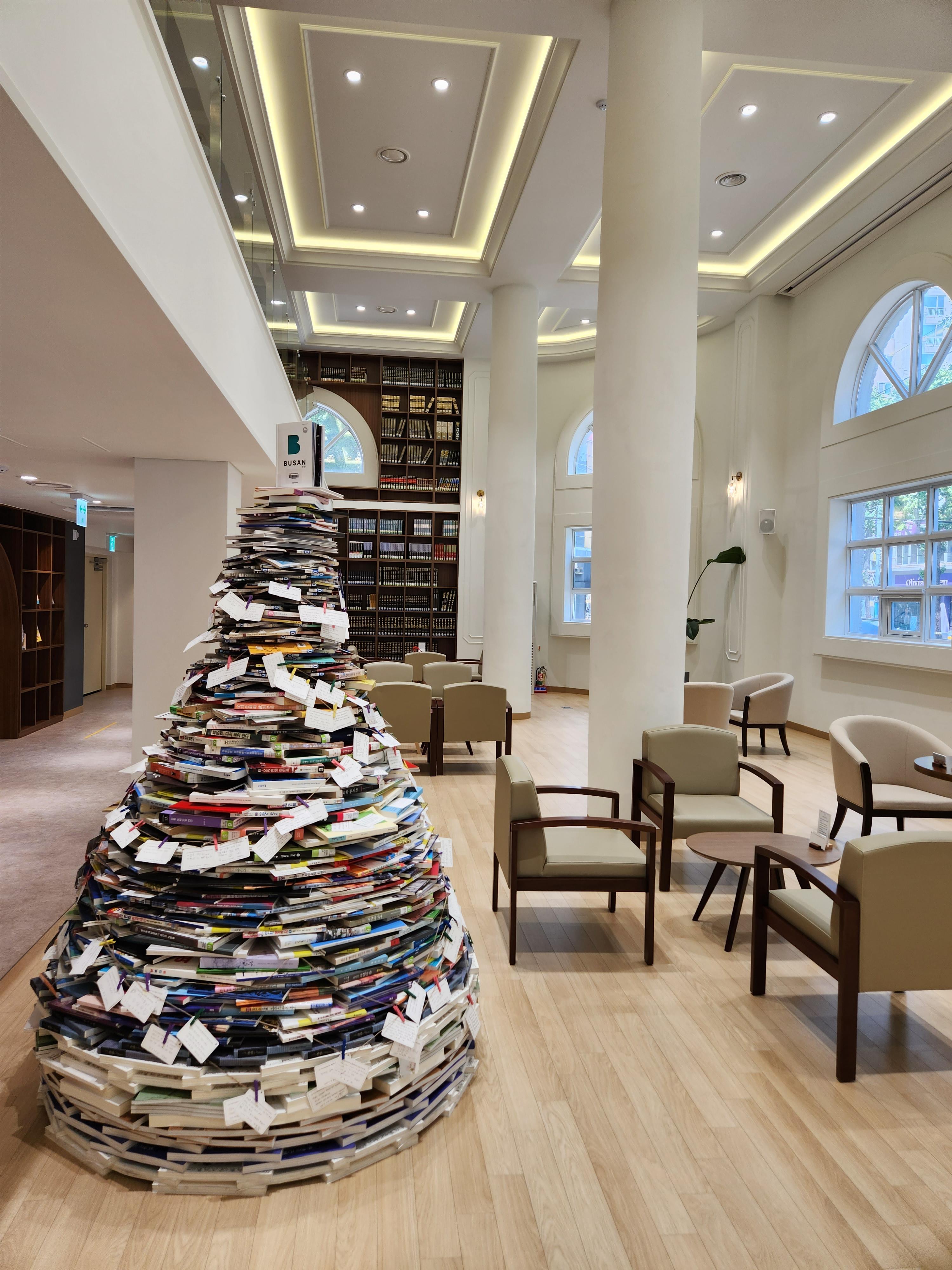 그리고 잊지말자 100년도 안지난 과거에 우리나라의 각종 물자를 착취하던 곳이 부산의 한복판에 있었고 해방 이후에도 힘없는 우리나라는 이 건물은 미군의 소유였다. 마치 우리나라 역사를 그대로 보여주는 건축물이다. 생각해보니 오래 앉아 책보면 기빨릴거 같기도 하다만 내부 인테리어는 참 훌륭했고 책은 언뜻 보기에 오래되고 부실했다.