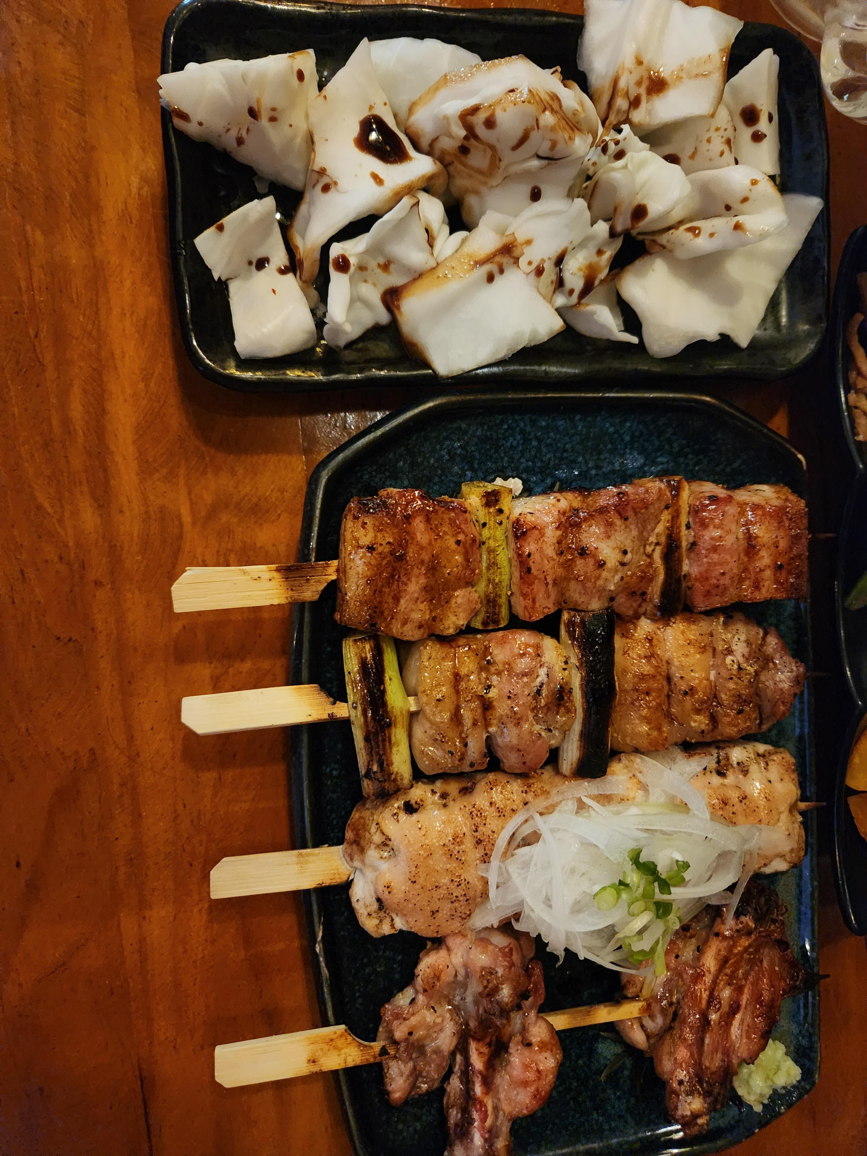 가격은 타카라보다 대략 천 원씩 싸다. 어제와 똑같이 꼬치 5개에 유자하이볼을 시켰다. 근데 어쩜 여기도 맛있다. 타카라가 재료가 좀 더 두껍고 실한 느낌이고 여기는 조금 얇은데 맛있다. 무엇보다 구운파가 이렇게 맛있는지 처음 알았다. 식감도 사각사각하다. 어찌 구우면 이렇게 되는 것인가? 파가 맛있어서 한 개 더 시켜 먹었다.