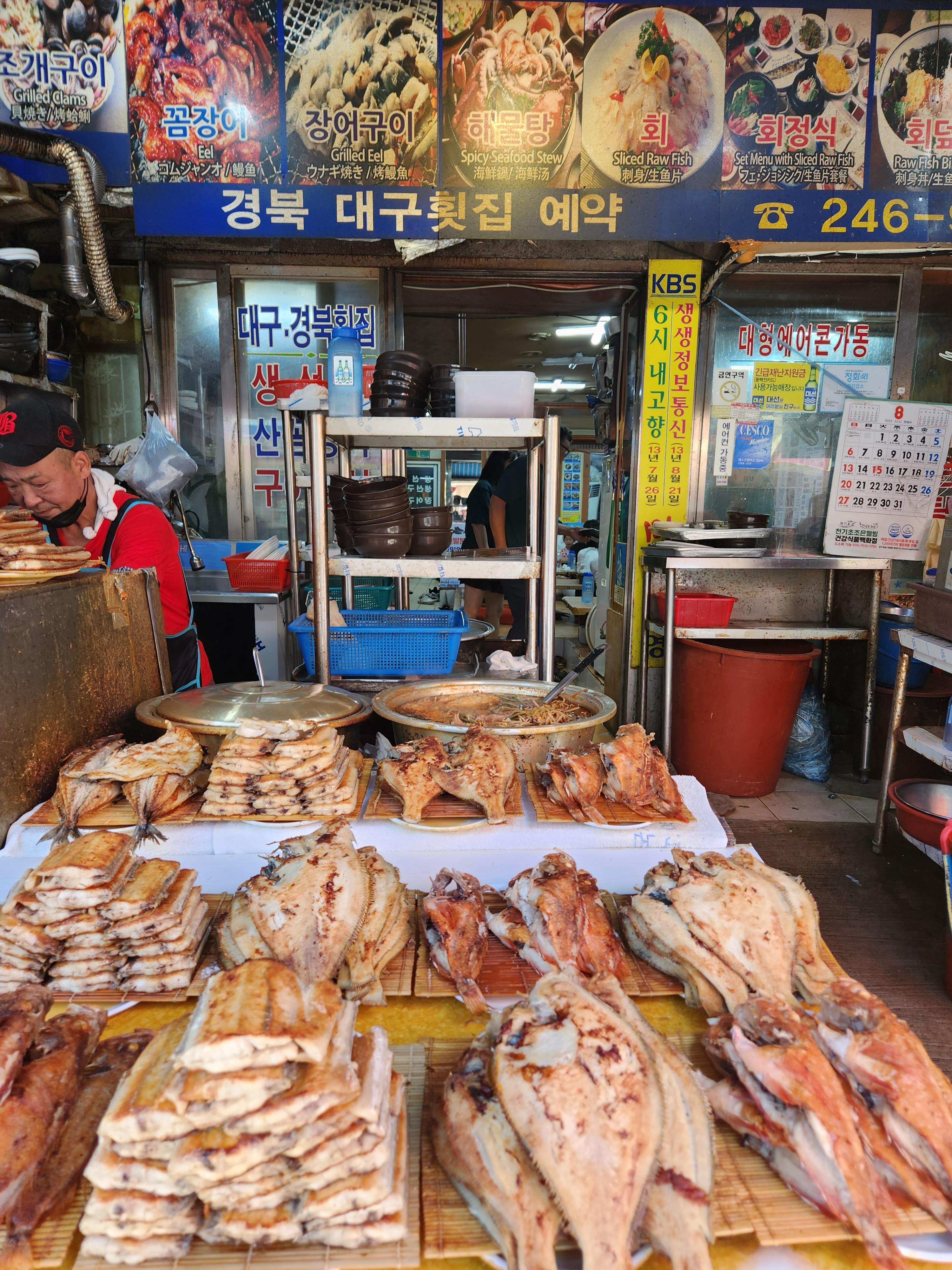 이번 여행에는 저번 여행의 기억이 안 나서 좀 더 안으로 들어가지 않고 자갈치시장 입구 식당에서 호객행위에 아무 생각 없이 들어가서 두 배 가까운 금액으로 바가지를 썼다. 꼭 생선구이 골목까지 안으로 들어가셔야 합니다.