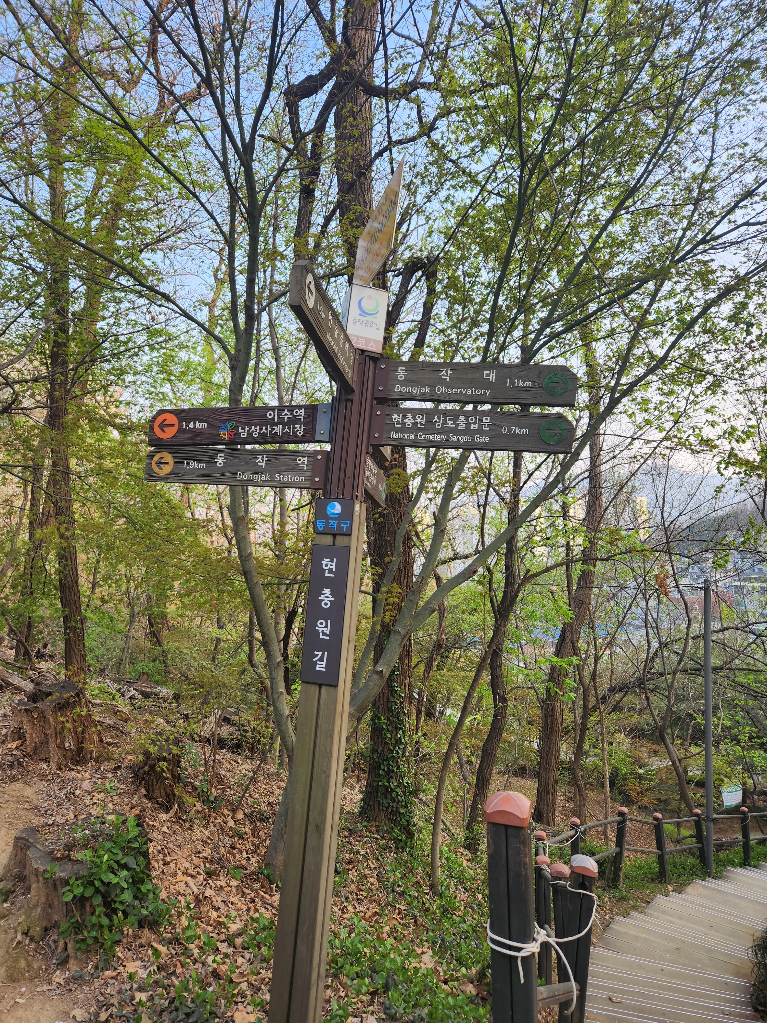 현충원에서 충분한 시간을 보냈다면 정문으로 다시 나가지 말고 장군묘역 뒤쪽으로 연결된 이수역 방면으로 나가는 것을 추천한다.카카오 지도 참고하몃 쉽게 길을 찾을 수 있다. 한적한 서울 둘레길을 걸으면 이수역 방면으로 나갈 수 있는데 이수역으로 가는 길 우성아파트 사잇길에서 또 하나의 서울 벚꽃 명소를 만날 수 있다.