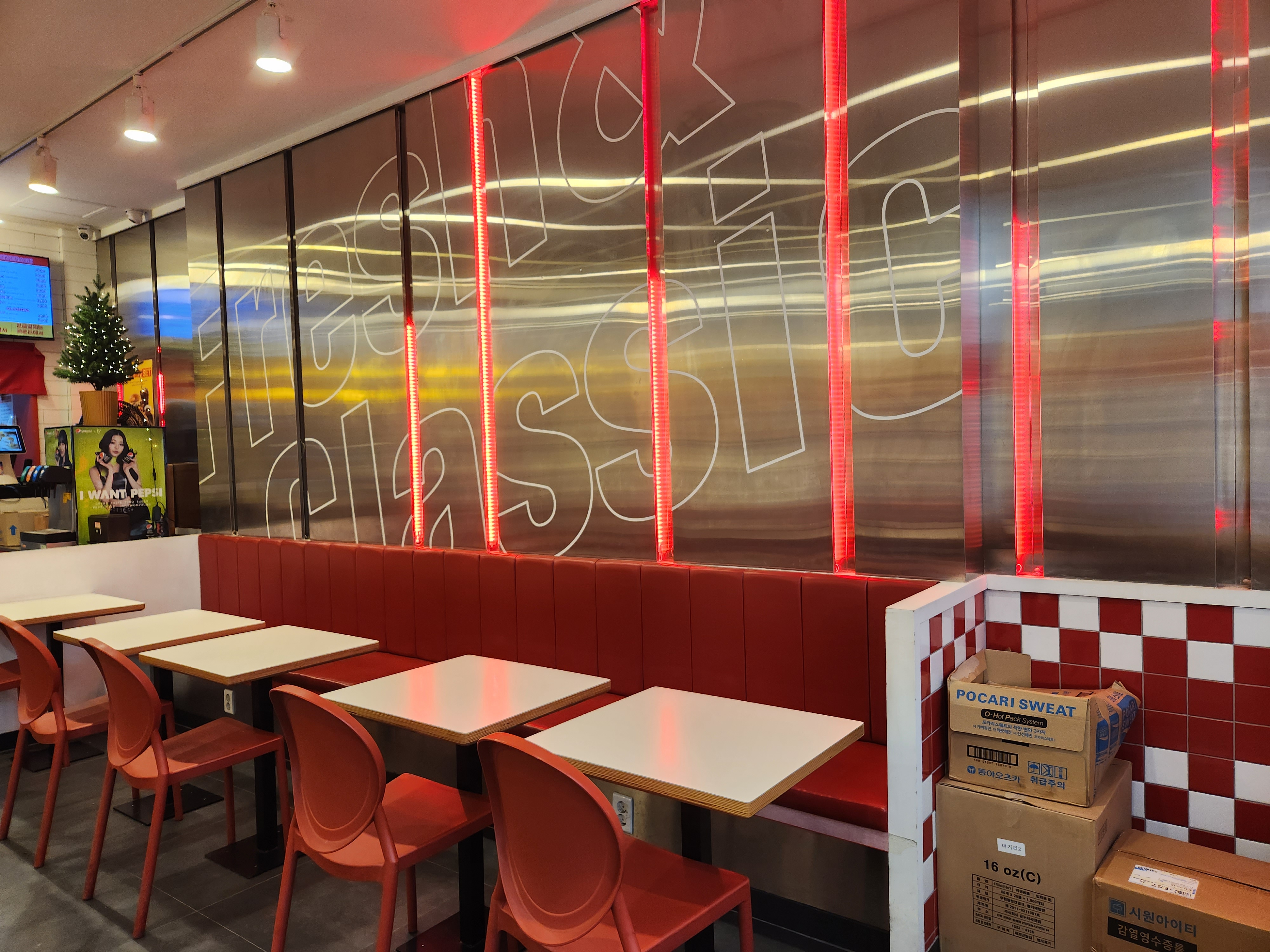 매장은 아담하지만 테이블이 꽤 있었다. 점심시간을 한참 지난 다음에 가서 매장이 한산했다. 무튼 신촌 갈 일 있다면 가성비 수제버거 맛집 추천한다.