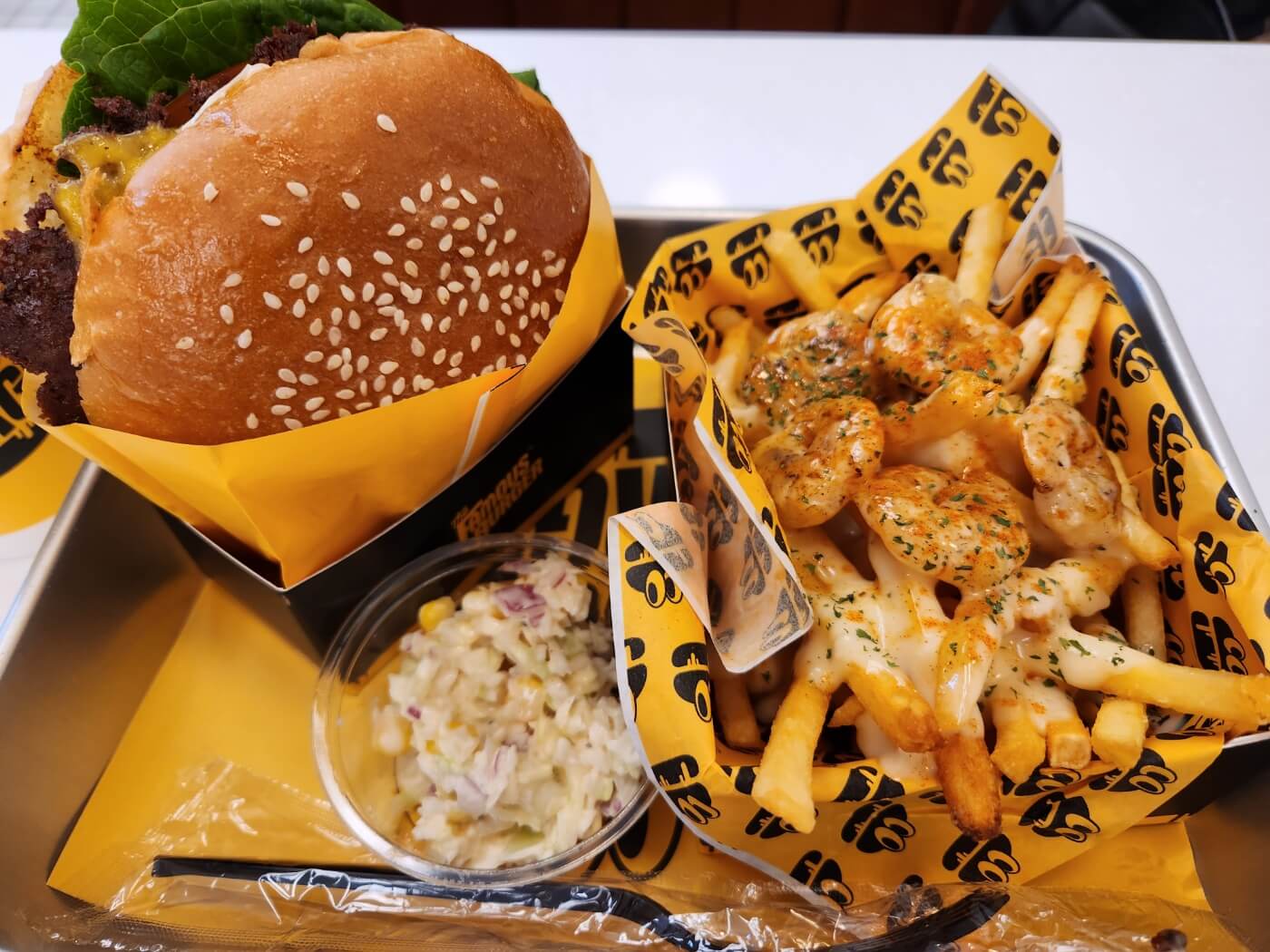 강남, 신사, 압구정에 있는 수제버거집들은 모두 세트구성이 없어서 아쉬웠는데 여기는 세트구성이 있어서 좋다. 햄버거 선택하고 5000원 추가하면 콘운슬로, 프렌치프라이, 탄산음료가 같이 세트구성이 된다. 나는 프렌치프라이를 에비스 프렌치 프라이로 추가금을 내고 변경했다. 프렌치프라이가 바삭하고 맛있는데 새우와 특제소스가 올려져 풍미를 더했다. 확실히 세트구성이 있으니 가격은 다른 곳에 비해서 저렴하게 더욱 풍성하게 먹을 수 있었다.