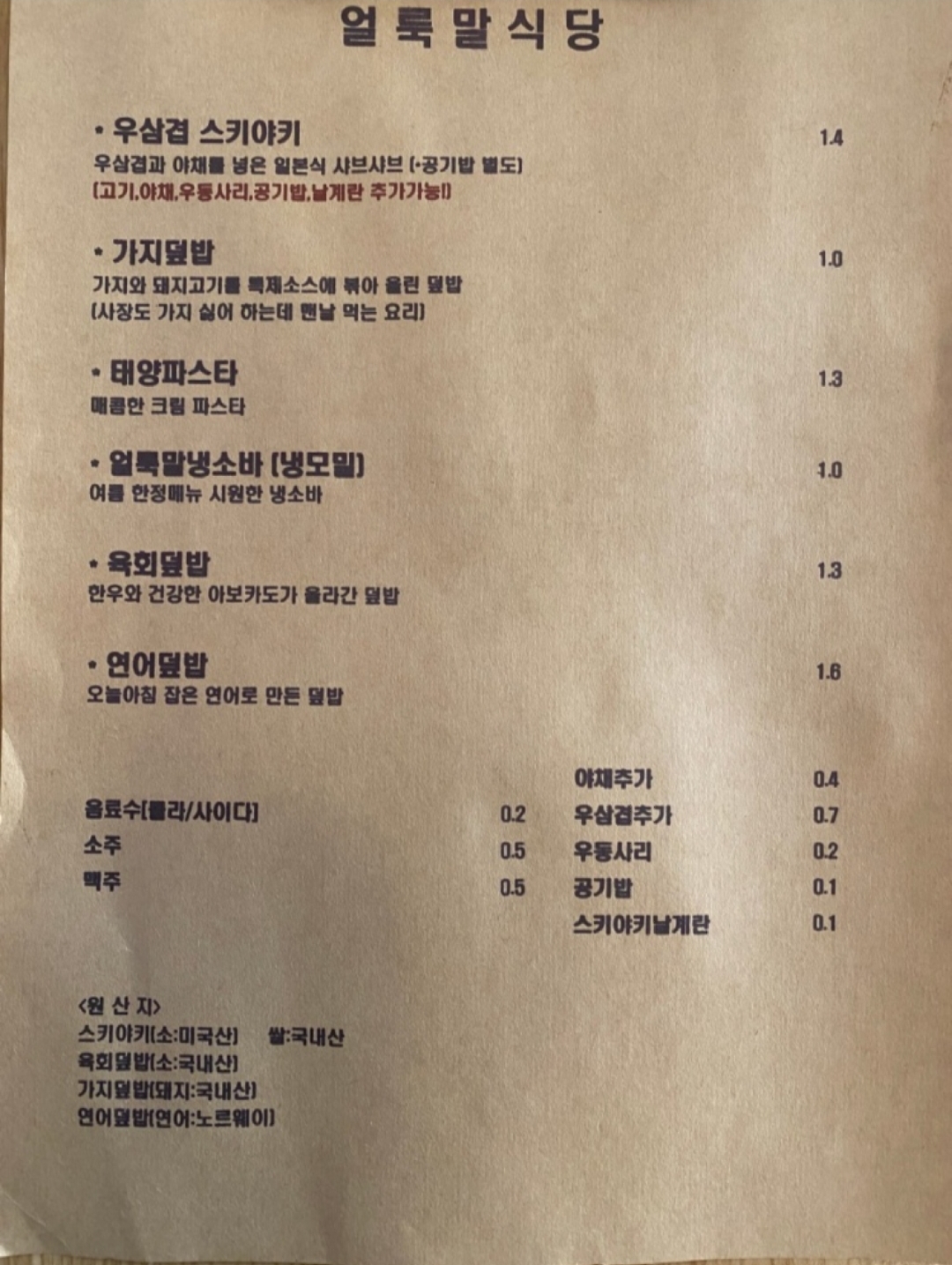 가지덮밥, 스키야키, 파스타 3가지 메뉴 시켰는데 다 맛있었고 간이 약간 센 느낌이었다. 가격 15000원선이어서 요즘 물가를 감안하면 아주 만족스러운 식사였다. 여러 분점이 있는 듯 하니 가까운 분점 방문해 보는 것을 추천한다.
