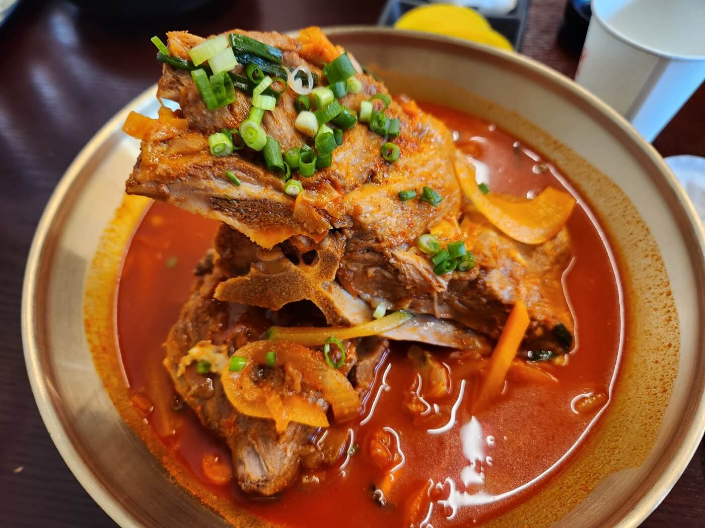 진짜 고기가 많이 붙어있는 뼈가 큰거 2개가 탑처럼 쌓여있다. 고기 육질이 부드럽고 맛있다.