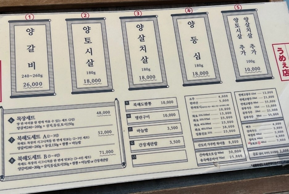 2. 철산 북해도 목장 양고기 및 메뉴 가격