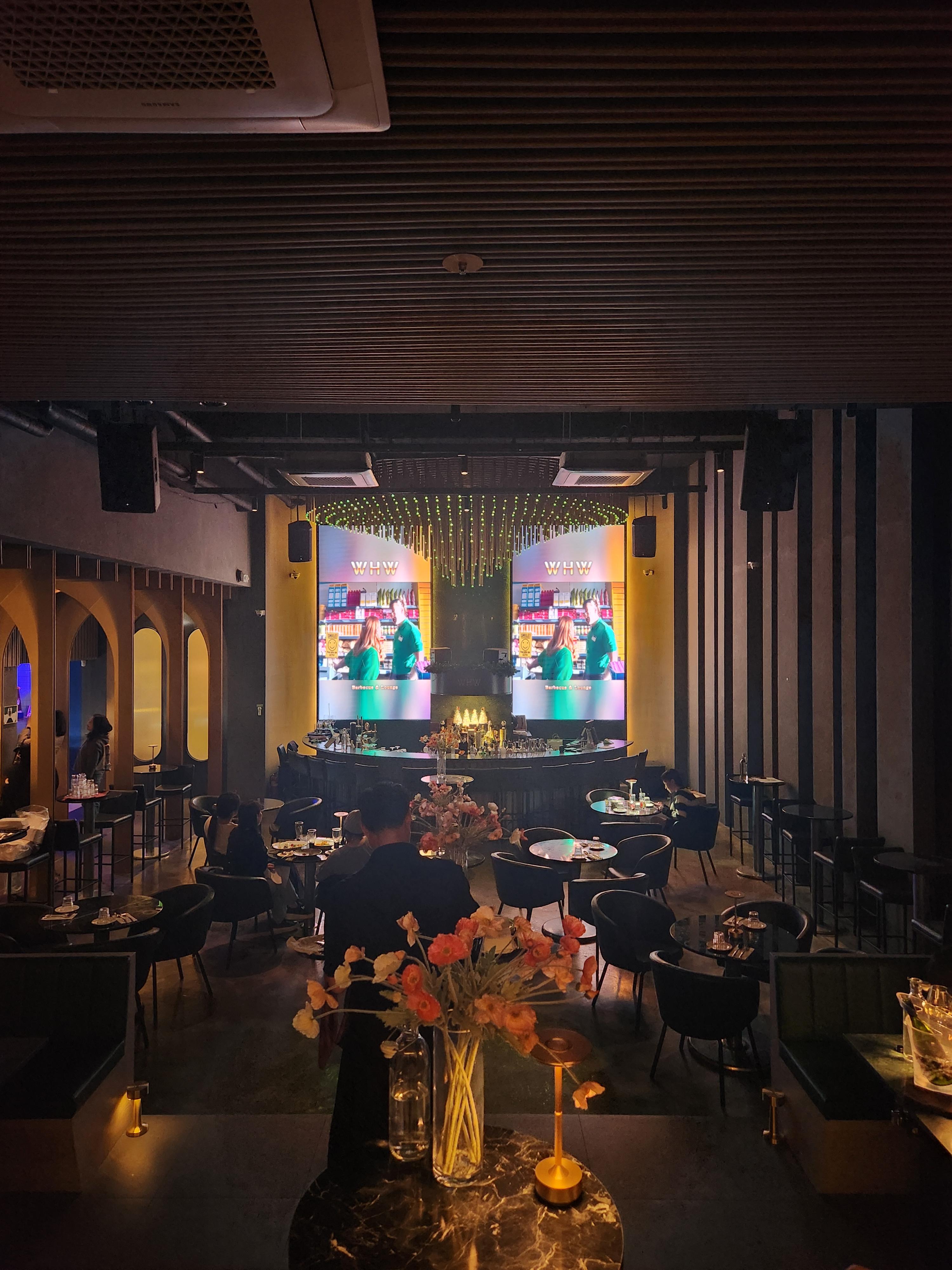 인테리어가 고급지고 멋있었다. 무대로 쓸 만한 높은 자리가 마련되어 있었는데 정국이 팬 모임이라고 했더니 그 자리에 있을 수 있도록 해주셨다.